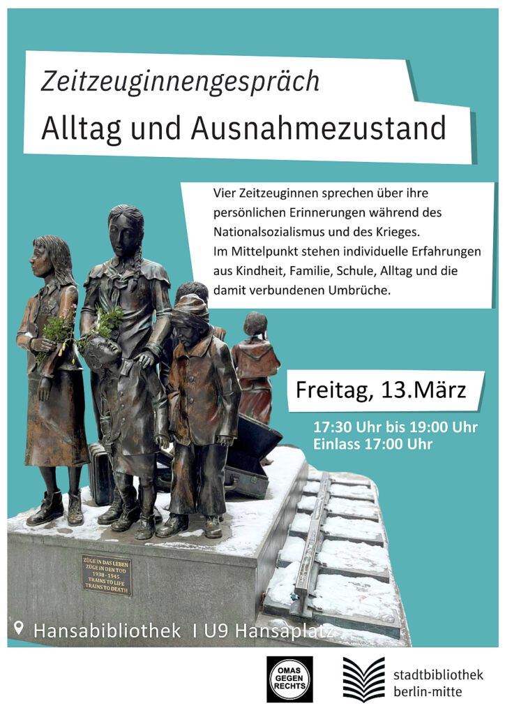 am Freitag, dem 13. März 2026 von 17.30 bis 19 Uhr Zeitzeuginnengespräche.