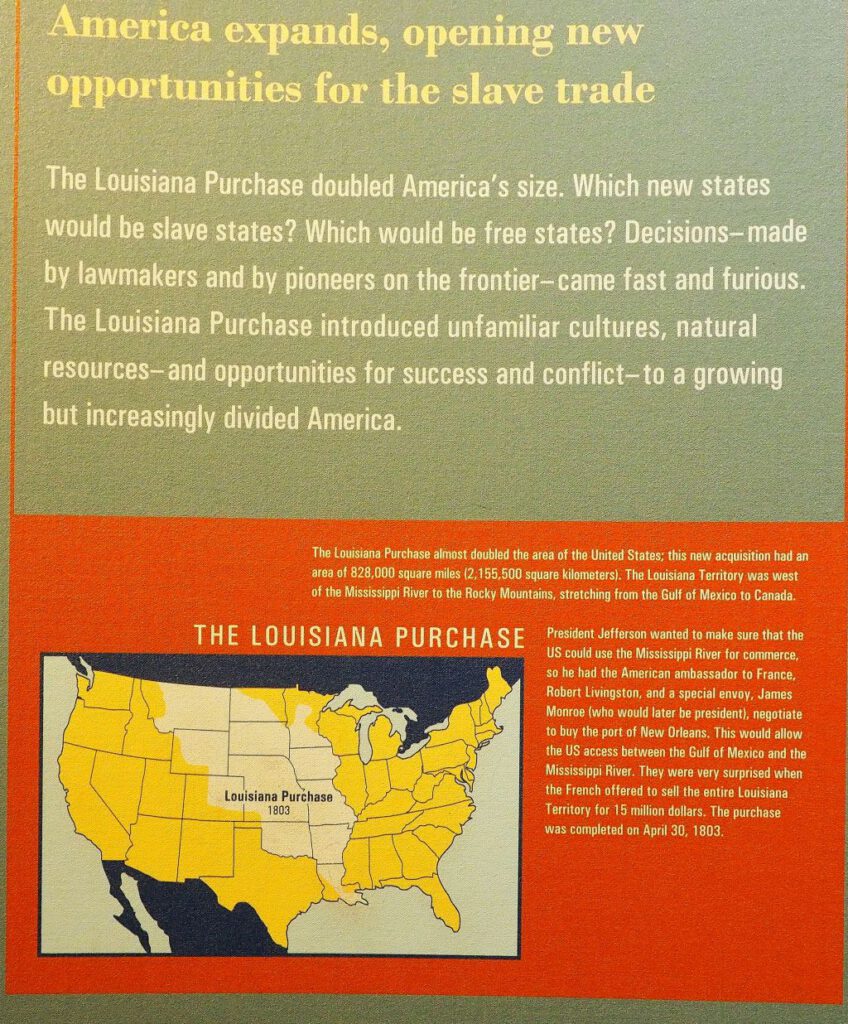 Ab 1807 war nach einem Kongressbeschluss die Einfuhr von Sklaven untersagt. Der Handel mit in den USA in Sklaverei geborenen Afroamerikanern durfte aber ungehindert bis zum Erlass des 13. Amendment (Verfassungszusatz) vom 18. Dezember 1865 fortgesetzt werden. Er verbot jedwede Form von Sklaverei.