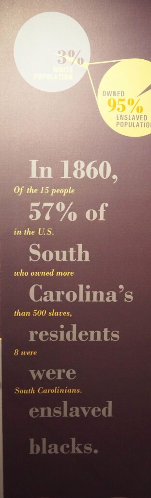 In dem historischen Sklavenmarkt von Charleston ist eine umfangreiche Sammlung an Dokumenten und Relikten der Sklavenwirtschaft zu besichtigen. Zahlreiche Bilder und Fotos lassen einen das damalige Leid der Sklaven erahnen. Gleichzeitig wird deutlich, wieviel Gewinn die damaligen USA aus dieser Wirtschaftsform bezogen haben und wie viele der großen Vermögen in Amerika und Europa entstanden sind. So werden von der afro-amerikanischen Community zu Recht Forderungen nach Wiedergutmachung erhoben.