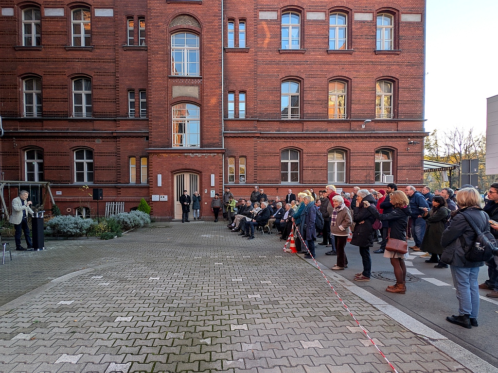 Am 6.November 2025 fand die Zweitenthüllung im Rahmen einer größeren Veranstaltung mit zahlreichen Gästen statt. Wir freuten uns besonders darüber, dass wir dabei Angehörige der Familien Borchardt und Klemperer begrüßen konnten, wie auch Prof. Hans-Herbert Wegener, den früheren Ärztlichen Direktor des Krankenhauses Moabit, Prof. Christian Pross, den Verfasser des Buches „. . . nicht mißhandeln!“ und Dr. Jan Groscurth, einen Sohn von Georg Groscurth.