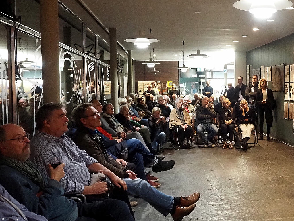 Danach nutzten die Gäste die Gelegenheit zum genaueren Studium der Ausstellung, zum angeregten Gespräch und vergaßen auch nicht, die Weinbar zu besuchen. Nach meinem Eindruck waren Gastgeber und Gäste mit diesem Abend sehr zufrieden.