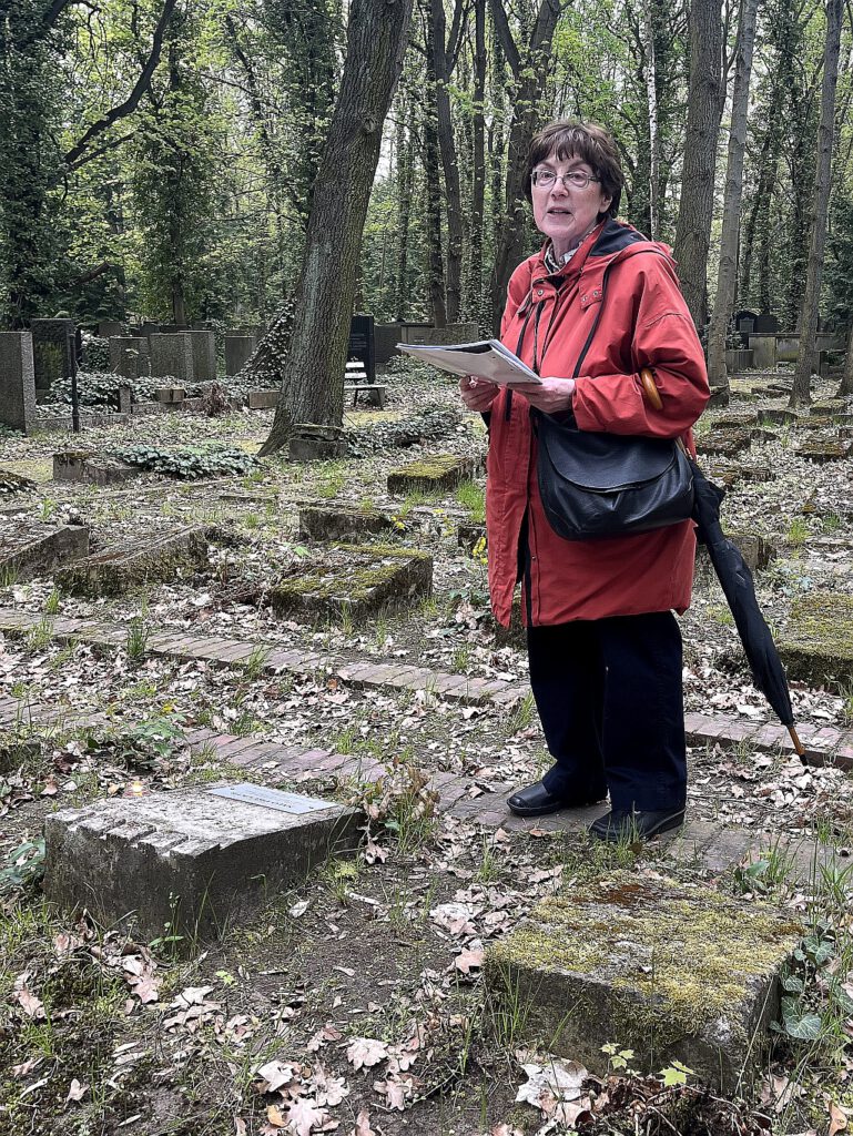 Im Frühjahr 2026 brachte der Steinmetz schließlich die Plakette auf Salo Druckers Grabstein an, sodass wir mit Lydia Tichauer einen Termin verabreden konnten. Da in derselben Zeit eine Stolpersteinverlegung für Dr. Ernst Michaelis, einem anderen Onkel von Frau Tichauer, in Babelsberg geplant war, legten wir beide Termine auf das jetzige Wochenende.
