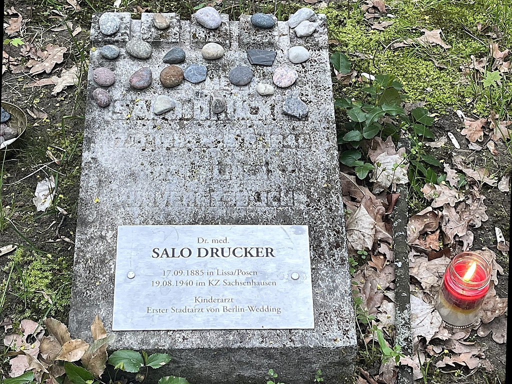 Salo Druckers Grabstein mit Plakette. dz