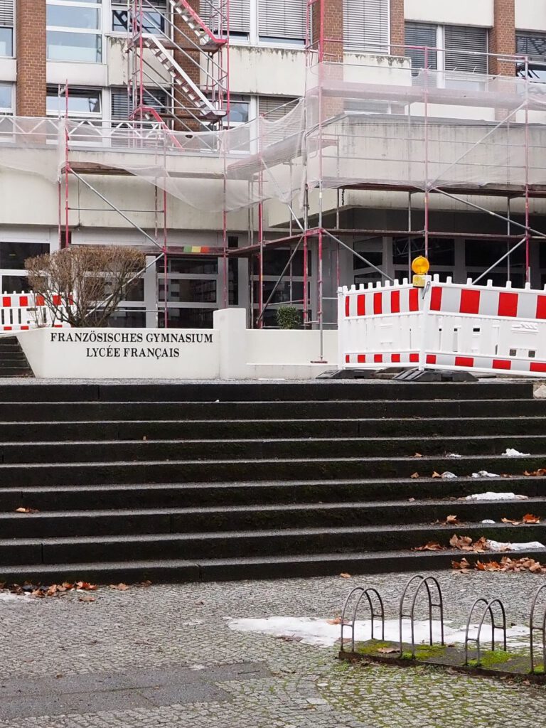 Der traditionelle Tag der Offenen Tür im Französischen Gymnasium bot wieder Gelegenheit für Begegnungen. Wir nutzten diesen Tag heute, um die SchülerInnen und ihre Lehrerin zu treffen, die an unserem langjährigen Projekt beteiligt sind. So konnten wir ihnen von den Baufortschritten am Bundespräsidialamt berichten und von den ersten Kontakten, um die Veranstaltung für die Zweitenthüllung abzusprechen. Außerdem tauschten wir uns über den Beitrag der SchülerInnen bei dieser Veranstaltung und unsere Vorschläge dazu aus.