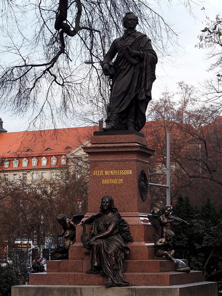 Vor der Thomaskirche hat übrigens ein Abguss des Denkmals für Felix Mendelssohn-Bartholdy wieder einen Platz gefunden. Das ursprüngliche Denkmal stand vor dem alten Gewandhaus und wurde dort 1937 von den Nationalsozialisten entfernt.