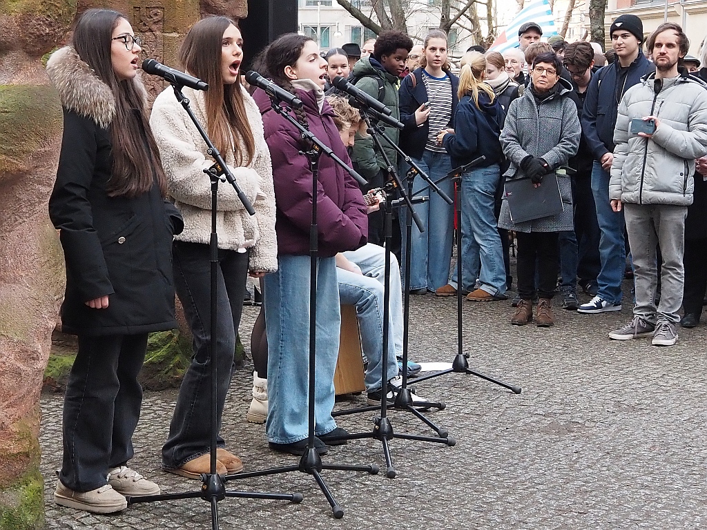 Eine Gesangsgruppe des Moses Mendelssohn Gymnasium begleitete musikalisch die Veranstaltung, die erfreulich gut besucht war.