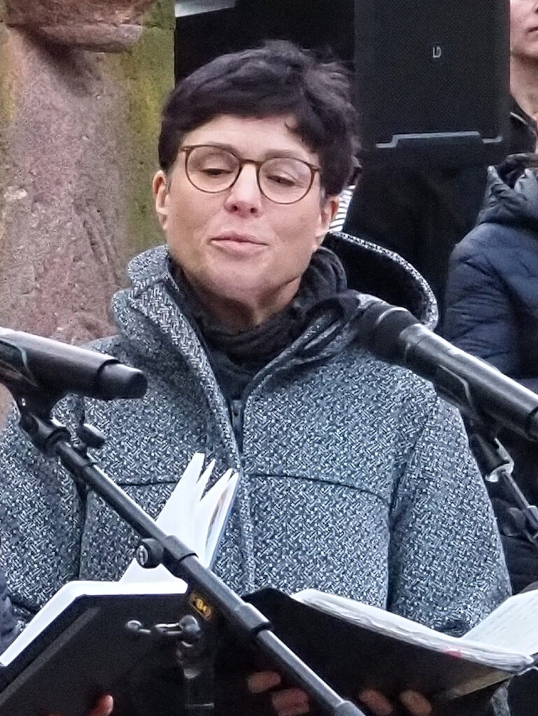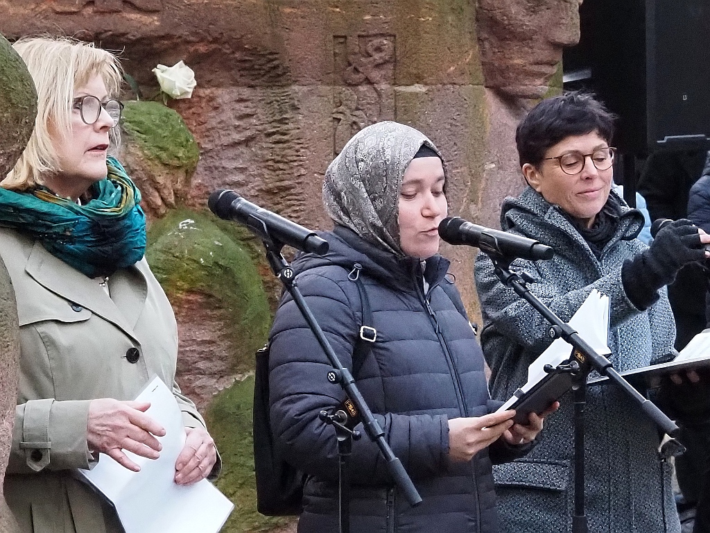 Nach einem trialogischen Austausch der Religionen folgte ein hebräischer Gebetsgesang, eindrucksvoll von Esther Hirsch, der Kantorin der Sukkat Schalom Synagogengemeinde vorgetragen und der Kaddish von der Rabbinerin Gesa Ederberg.