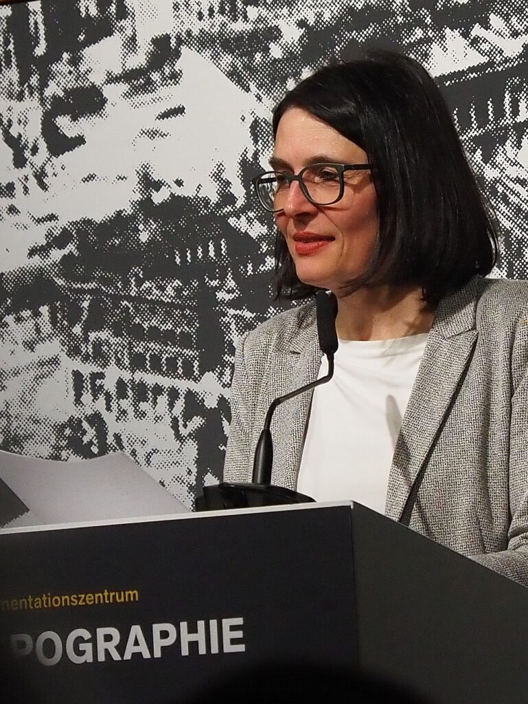 Anschließend folgte der Beitrag von Staatsminister für Kultur, Wolfram Weimer, in dem er das Verhalten der Deutschen in und nach dem Dritten Reich beschrieb, ebenso die Verbrechen in der Öffentlichkeit und die Rolle der Reichsbahn. Die Berliner Senatorin für Kultur, Sarah Wedl-Wilson, erinnerte an den Ort der Täter in der Prinz-Albrecht-Str. 8 und an die unbeantworteten Fragen, die der vermeintlich ahnungslosen Gesellschaft nach dem Krieg gestellt wurden.