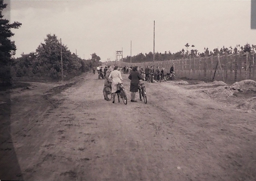 Am Zaun des Lagers für sowjetische Kriegsgefangene in Wietzendorf, 1941 (Sie lebten in Erdhöhlen, bei völlig unzureichender Bekleidung und Ernährung). Privatbesitz Nachlass Heinrich Jürs, Wietzendorf. Gesehen in der Ausstellung „Der Holocaust – Was wussten die Deutschen? Topographie des Terrors 2026.