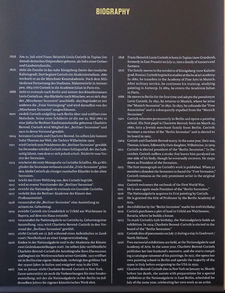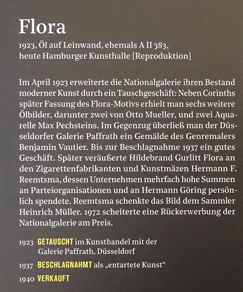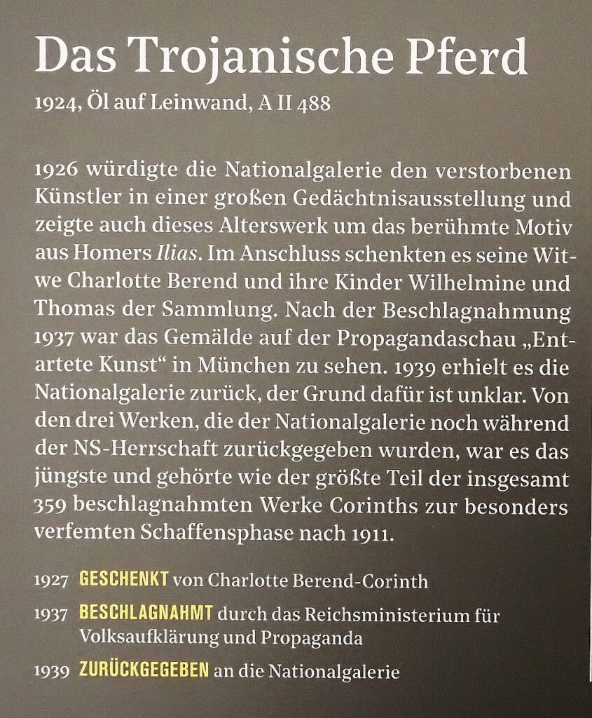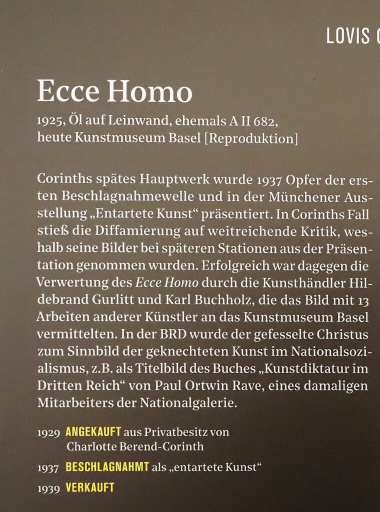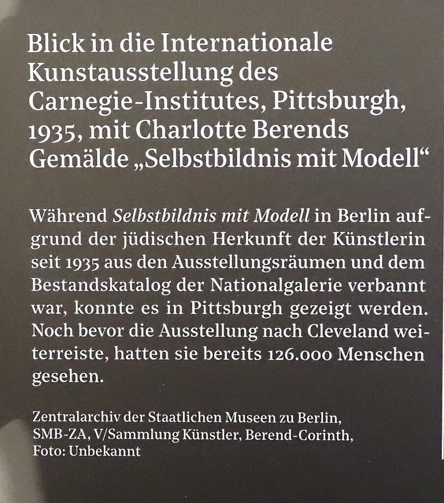 In der Ausstellung kann der Besucher und die Besucherin jetzt das Schicksal einzelner Bilder verfolgen. Dabei fällt wieder der männliche Blick auf das Thema auf. Während Lovis C. ausführlich mit seinem Lebenslauf vorgestellt wird, erscheint Charlotte BC fast nur als Fußnote. Besucher, die zum ersten Mal mit dem Künstlerpaar konfrontiert werden, erfahren wenig darüber, wie das Werk der beiden entstanden ist. Wenn man sich mit beiden Persönlichkeiten beschäftigt hat, würde man das gern korrigieren. So wie wir es bei der Berliner Gedenktafel in der Klopstockstr. 25 – 27 getan haben.