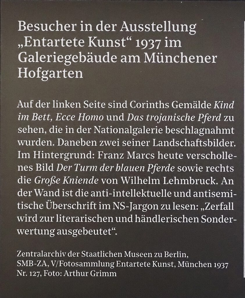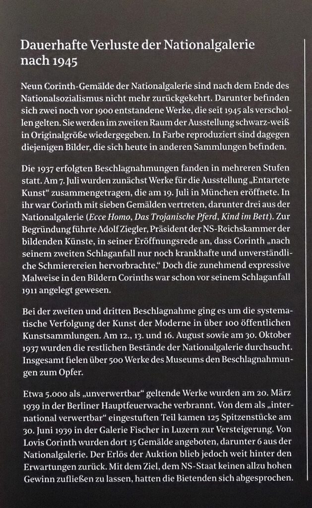 In den Focus der NS-Kulturpolitik geriet vor allem Lovis Corinth, weil er sich in seiner künstlerischen Entwicklung zunehmend dem Expressionismus zuwandte.