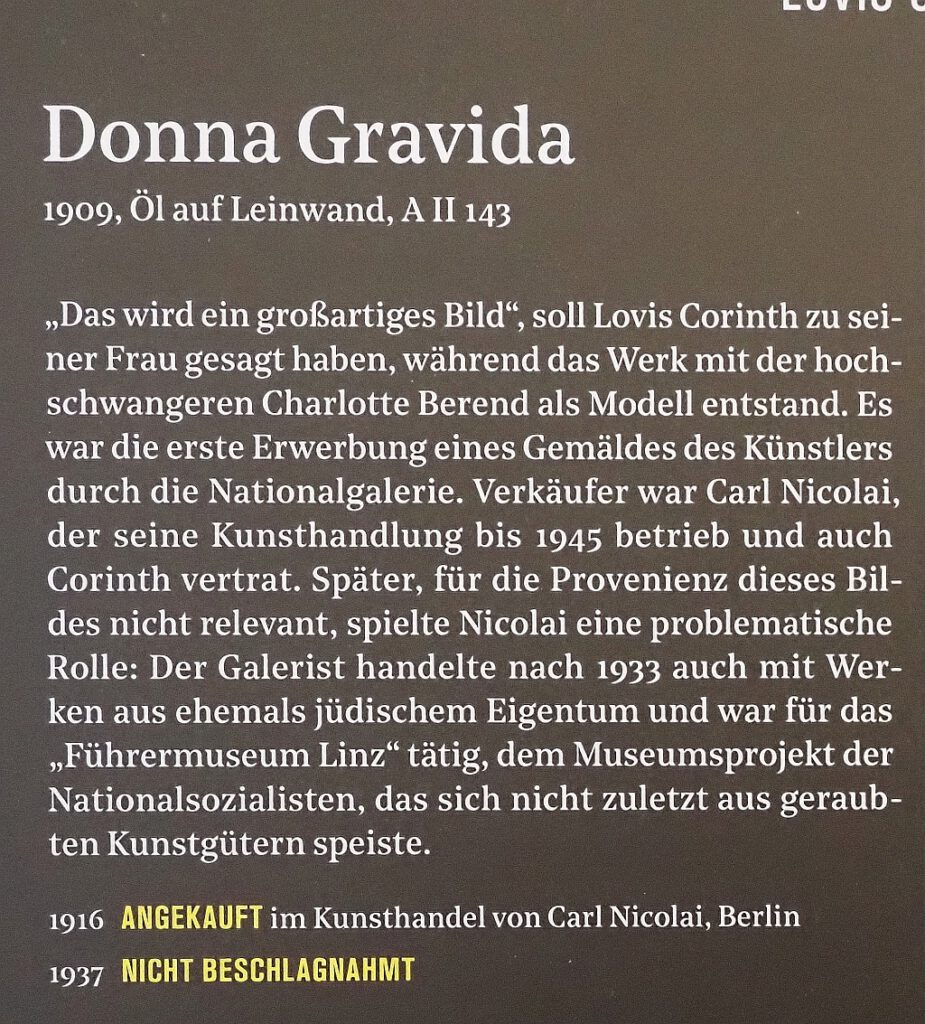 Kunst einmal aus einer ganz anderen Perspektive betrachtet lässt sich im Augenblick in der Alten Nationalgalerie erleben. Dort werden Bilder von Charlotte Berend-Corinth und Lovis Corinth unter zeitgeschichtlichen Gesichtspunkten gezeigt. Beider Kunst wurde von der NS-Kulturpolitik teilweise als nicht systemkonform und entartet eingestuft.