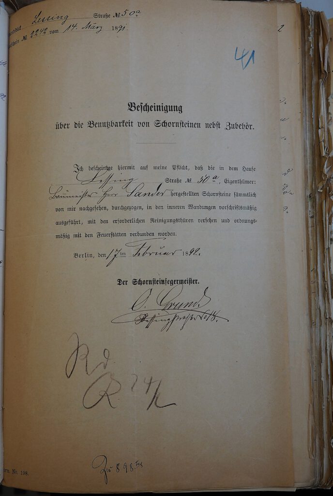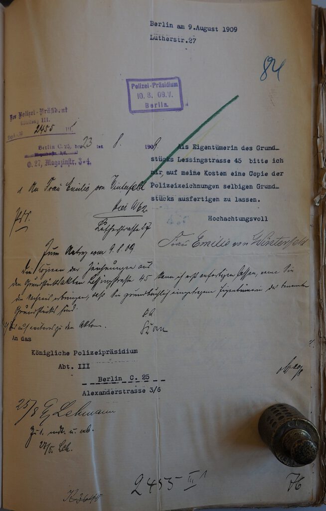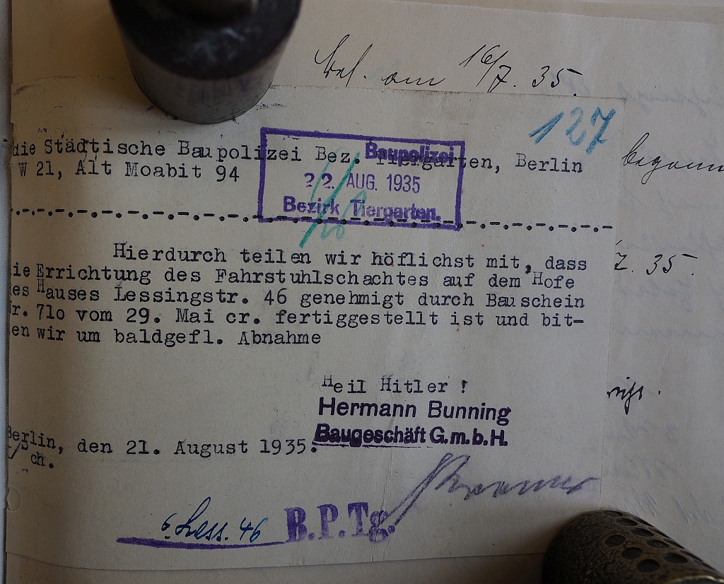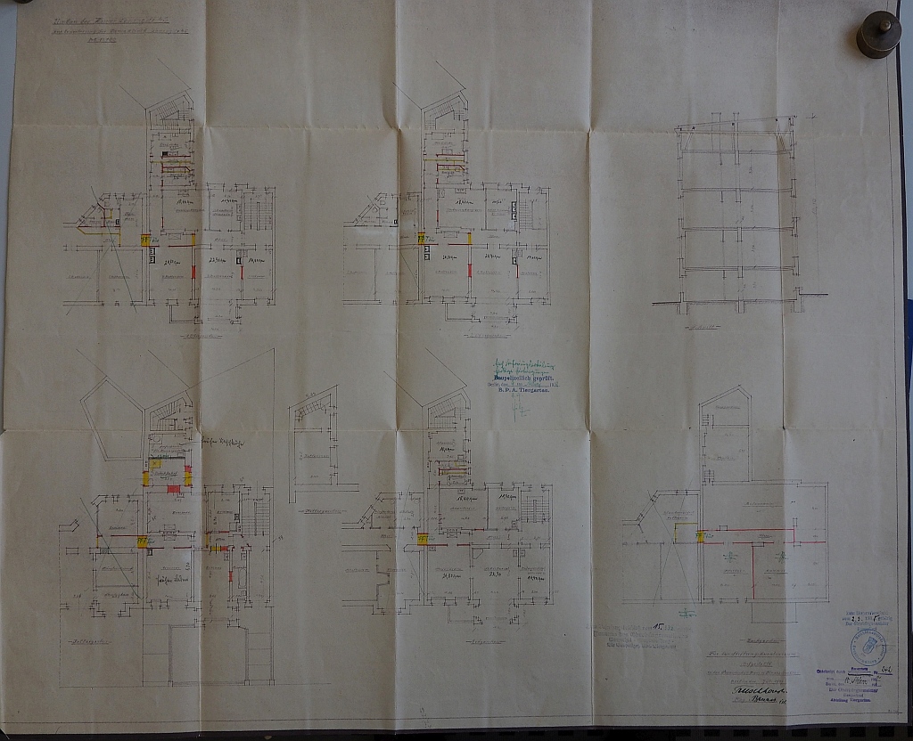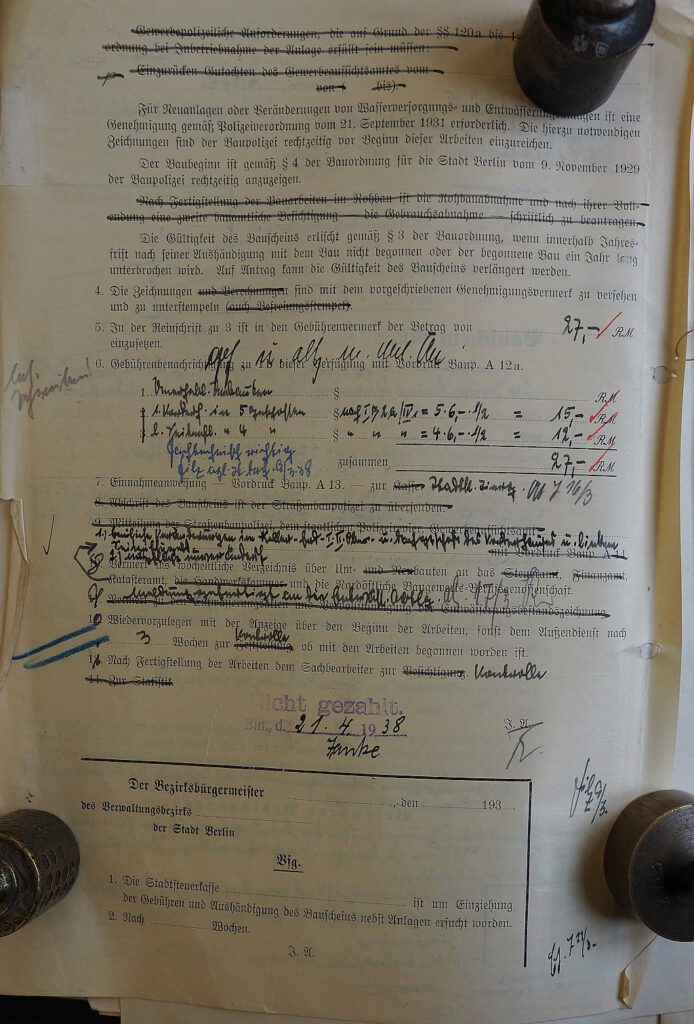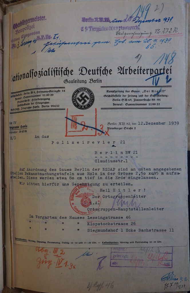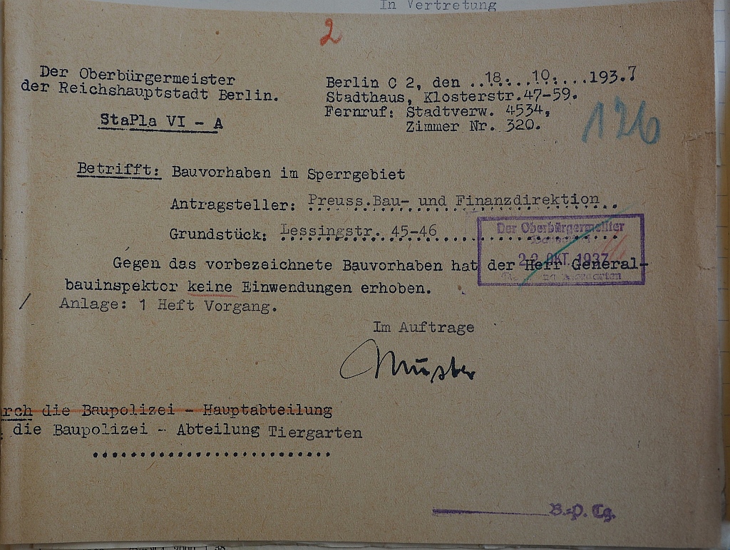 Dokumente aus der Bauakte Lessingstraße Nr. 46 bei der Erweiterung der Klinik am Hansaplatz 1937 zur Neurochirurgischen Universitätsklinik.