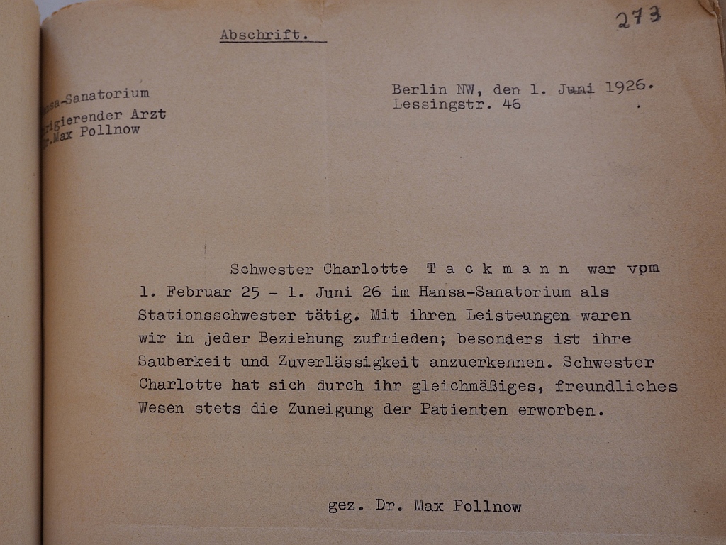 Dokumente zum Sanatorium – Klinik am Hansaplatz